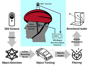 AI-powered safety helmet designed to warn riders of vehicles outside their field of vision.